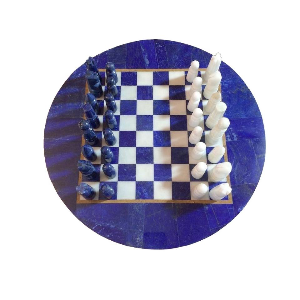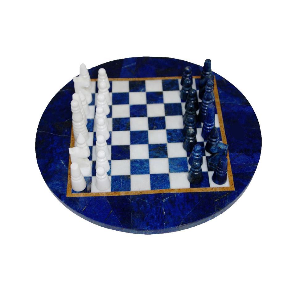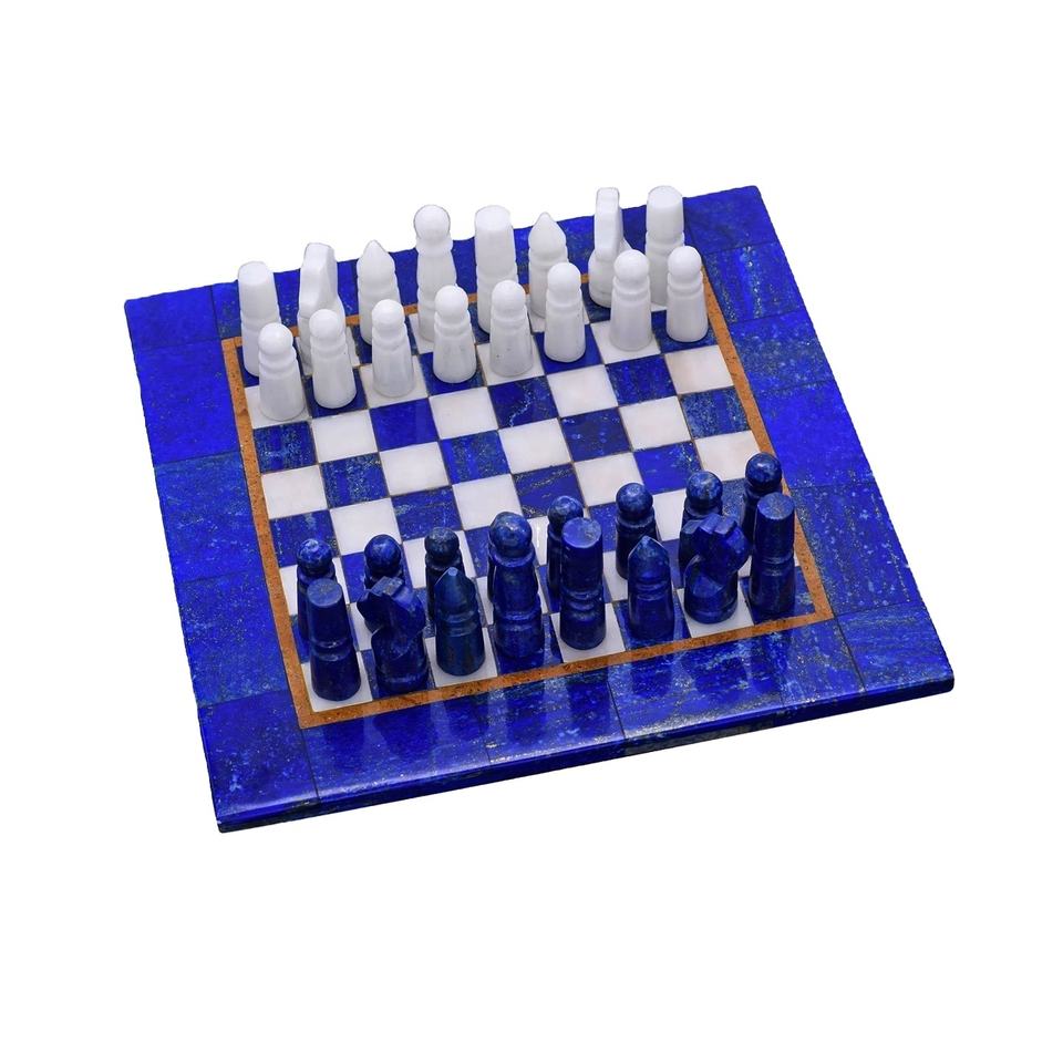 Lapis Lazuli พรีเมี่ยมและโอนิกซ์หินหมากรุกชุดที่มีรูปแกะสลัก-เกมกระดานกลยุทธ์สำหรับผู้เล่นสองคนโมเดลการตกแต่งที่หรูหรา