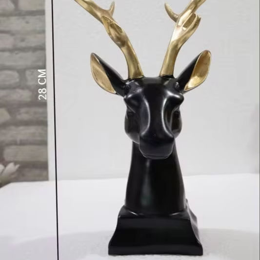 รูปปั้นหัวกวางเรนเดียร์สีดำขนาดใหญ่แบบพรีเมี่ยมพร้อมแตรสีทองเรนเดียร์สุดหรู
