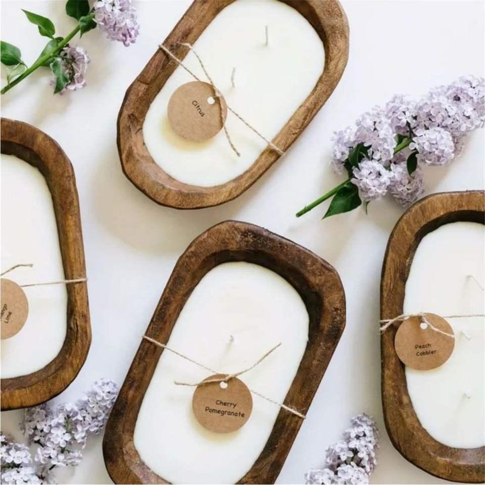 เทียนหอมในโถไม้ตกแต่งขนาดใหญ่แบบพรีเมียม | เทียนไขถั่วเหลืองธรรมชาติ | เทียนหอมหรูหราแบบเทด้วยมือในถ้วยไม้สไตล์เรสติก