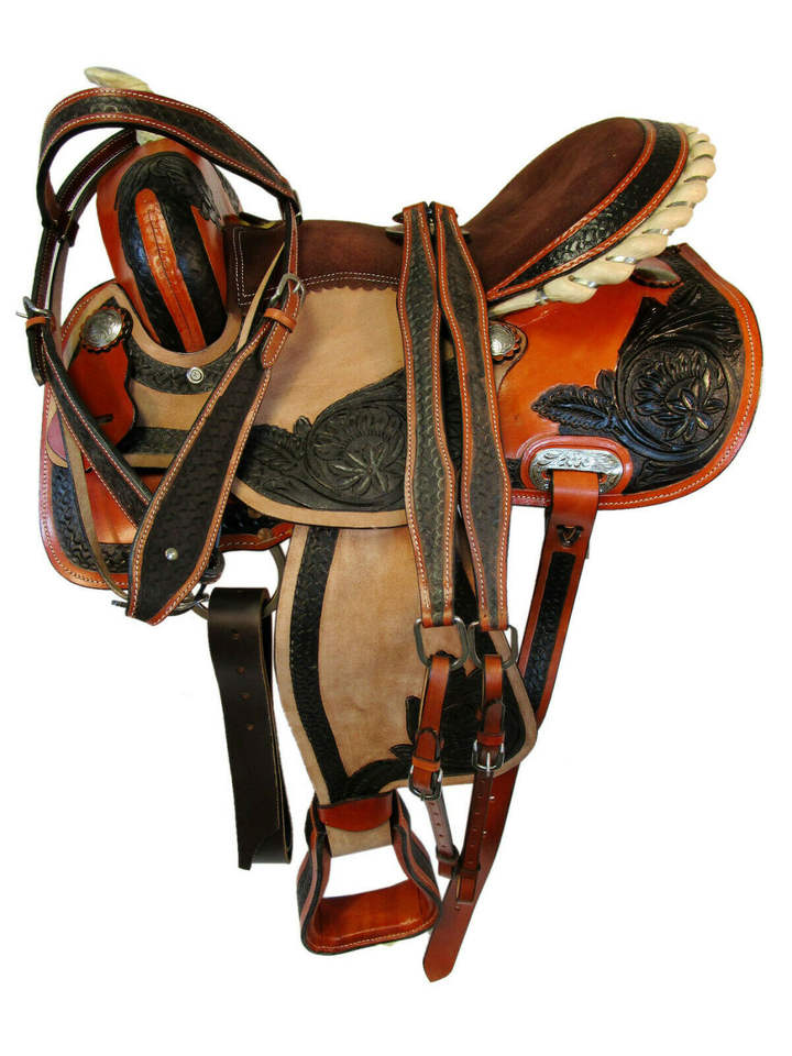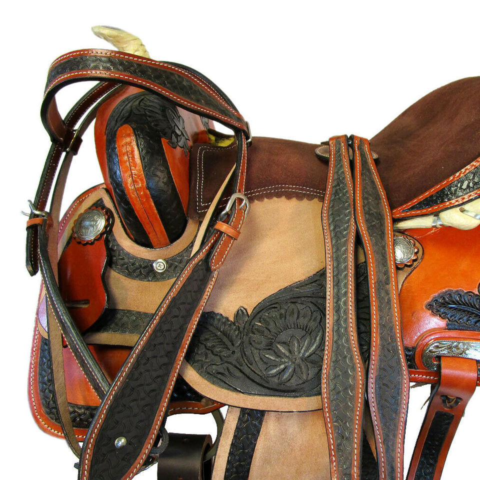 ชุดอานม้าหนังแท้แบบพรีเมี่ยมสำหรับแข่งม้าแบบตะวันตกมีหลายขนาด14 "-18" มีหลายสีให้เลือก