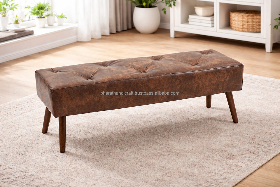 ม้านั่งหนังพรีเมี่ยมพร้อมเบาะหนาเบาะมีสไตล์และกรอบแข็งเหมาะสำหรับการเพิ่มความสบายและคลาสให้กับทุกห้อง