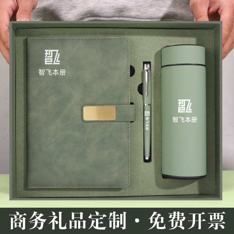 ชุดของขวัญธุรกิจหนังพรีเมียม พร้อมสมุดบันทึก ปากกา และแก้วน้ำ ปรับแต่งได้สำหรับใช้ในสำนักงาน