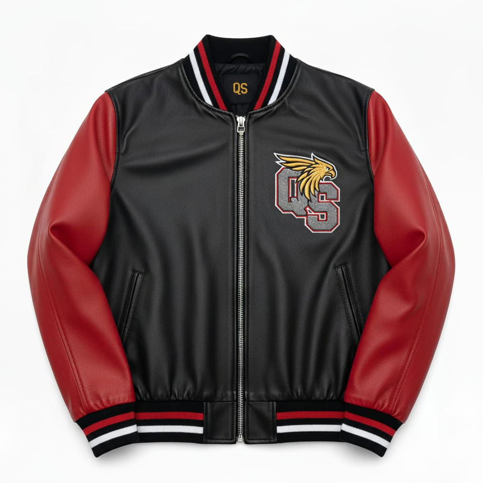 เสื้อแจ็คเก็ตหนังผ้าใบเคลือบพรีเมี่ยมสำหรับผู้ชายฤดูหนาวคอตั้งมีสไตล์แขนสีตัดกันเรียบและดีไซน์ซิปรูดทันสมัย
