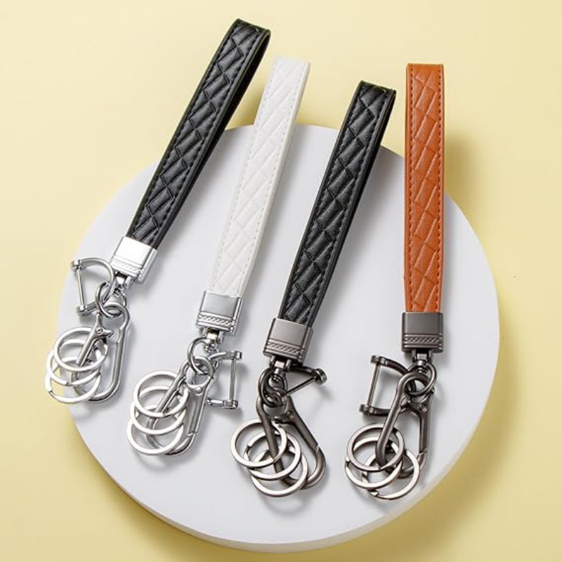 พวงกุญแจหนังพรีเมี่ยมที่มีดีไซน์เรียบง่ายพวงกุญแจทนทานสำหรับผู้ชายและผู้หญิงพวงกุญแจอเนกประสงค์