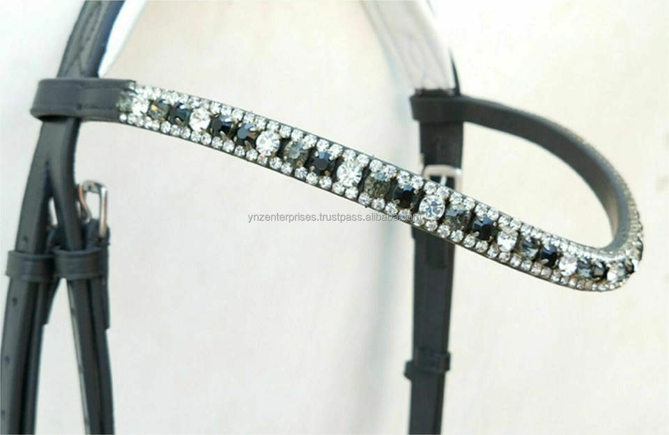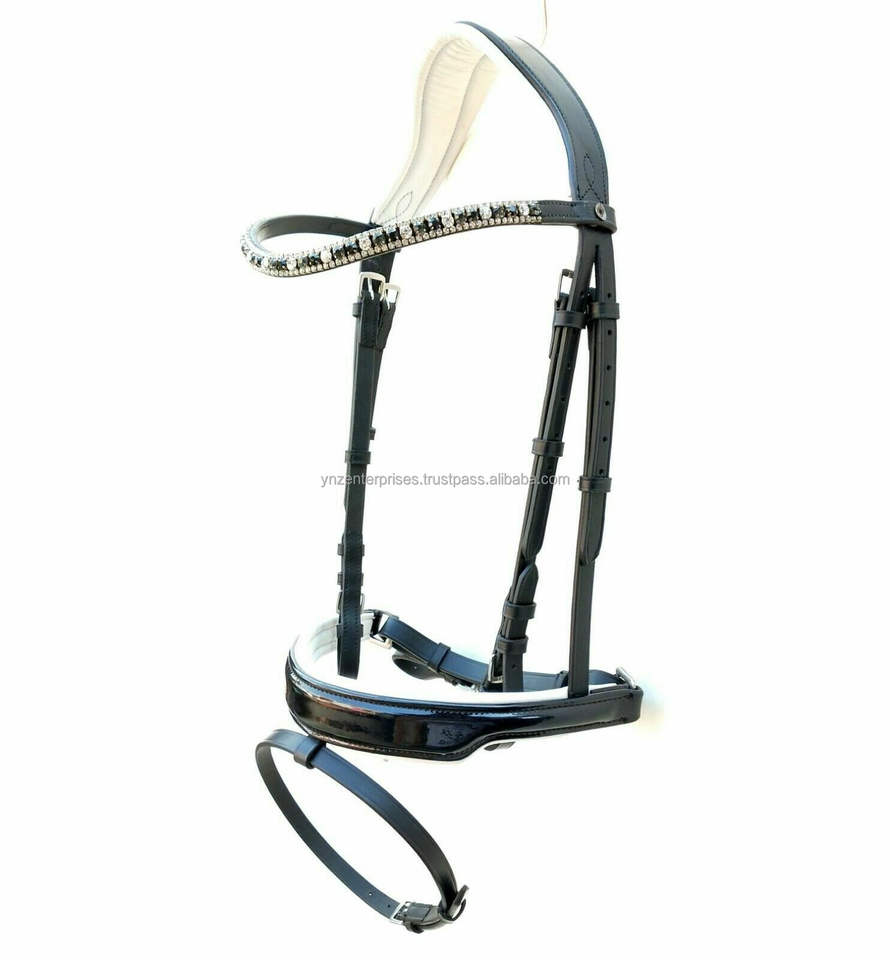 บังเหียนหนังพรีเมียมแบบมีแผ่นรองรับรูปทรงสำหรับม้า พร้อมหัวเข็มขัดปรับแต่งได้