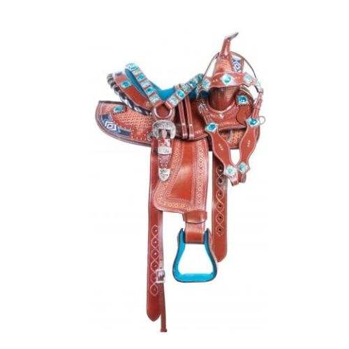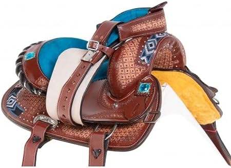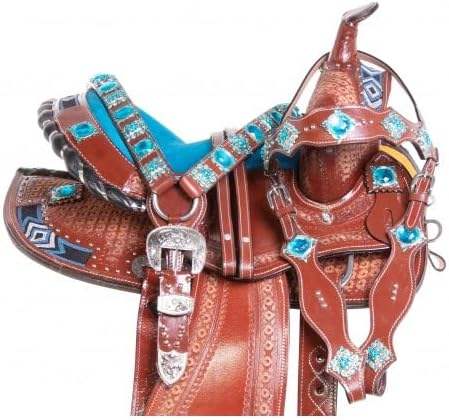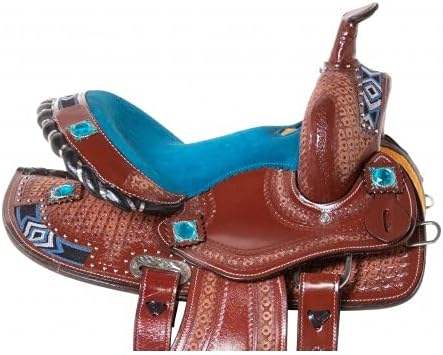 อานม้าหนังแท้สีฟ้าตะวันตกแบบพรีเมี่ยม, อานม้าแข่งม้าถังสีฟ้าแบบสุดเจ๋งอุปกรณ์จับคู่สำหรับนักขี่ม้า