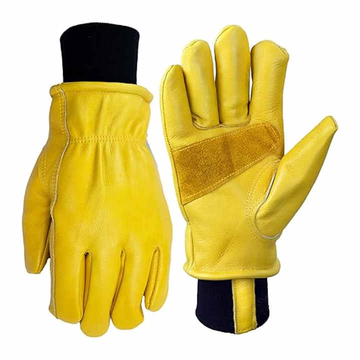 ถุงมือทำงานหนังพรีเมี่ยมสำหรับผู้ชายกันลมถุงมือทำงานในฤดูหนาวหนังวัวขับรถทำกิจกรรมกลางแจ้งงานหนักทนทาน