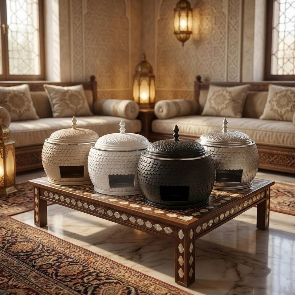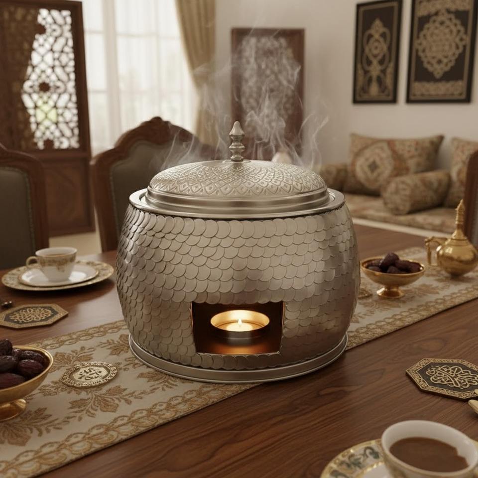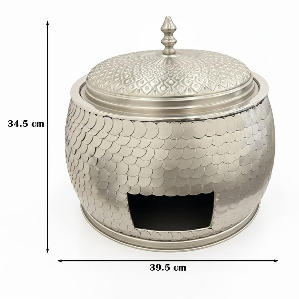 หม้ออุ่นอาหารพรีเมียมแบบมีฝาปิด พร้อมที่อุ่นเทียนทีไลท์ ลายเกล็ดปลา ทำจากสแตนเลสสตีล สำหรับตะวันออกกลาง