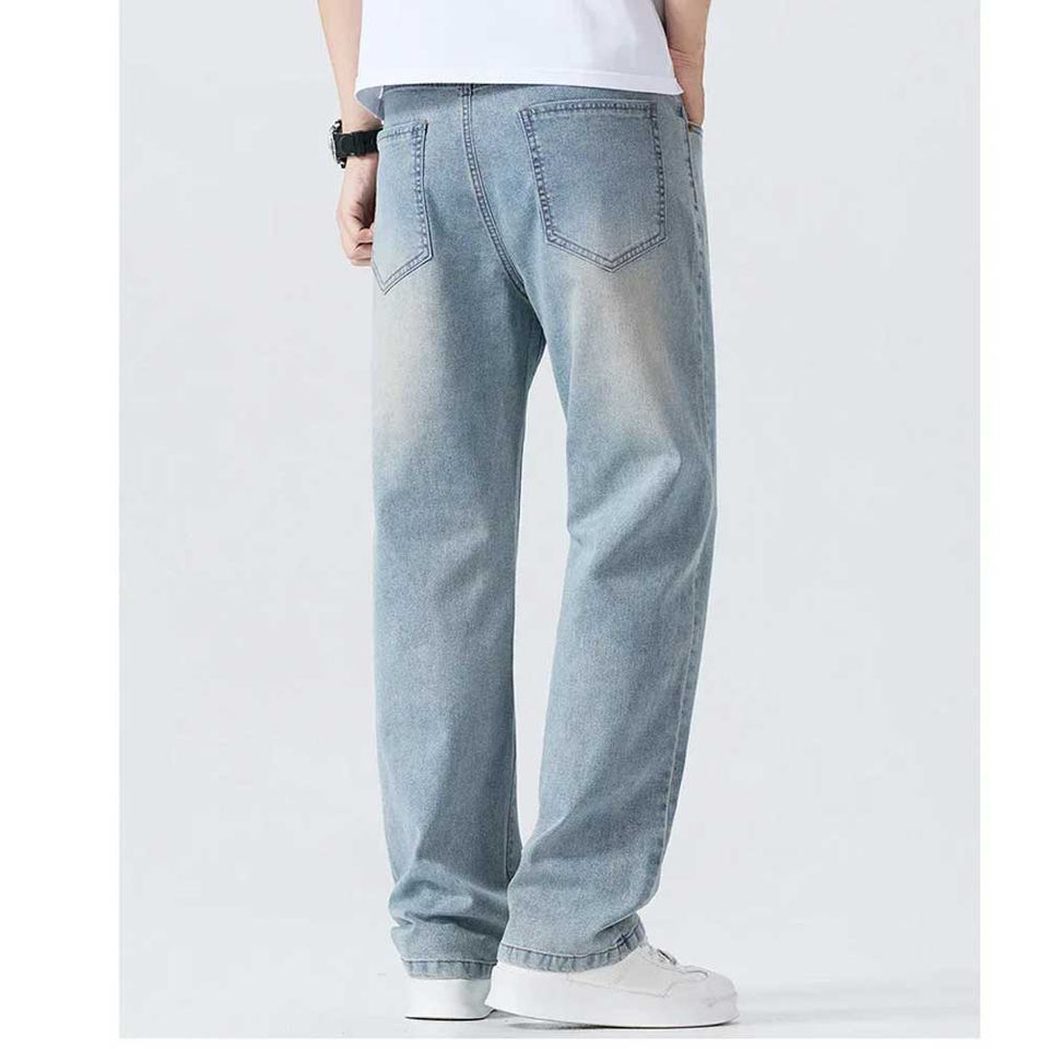 Premium Light Blue Straight Leg Denim Jeans for Men Classic Relaxed Fit Light Wash Trousers High Quality Cotton Casual Pants