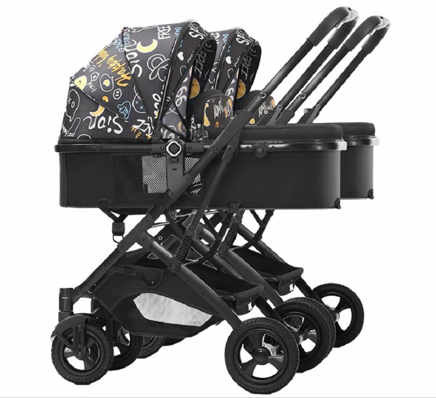 รถเข็นเด็กแบบพับได้ 4 ล้อ น้ำหนักเบา พรีเมียม สำหรับเด็กแฝด พร้อมที่รองศีรษะขนาดใหญ่คู่ สำหรับเด็ก 2 คน อายุ 0-3 ปี