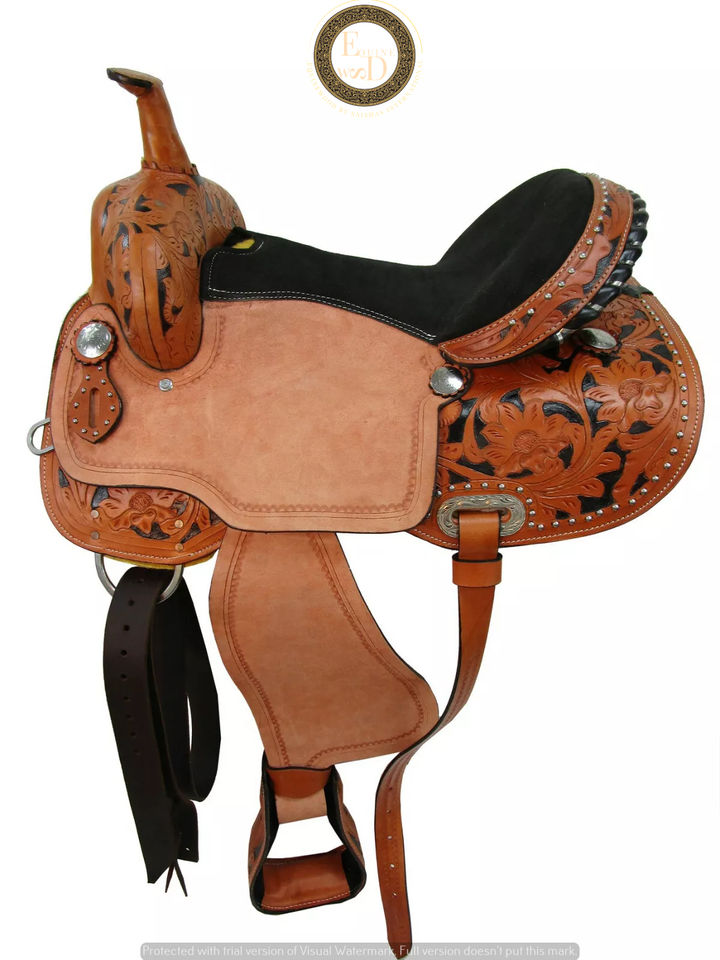 อานม้าหนังแท้น้ำหนักเบาพรีเมี่ยมสไตล์ตะวันตกทำด้วยมือสำหรับการแสดงโรดิโอแบบกระบอกสวมใส่สบาย