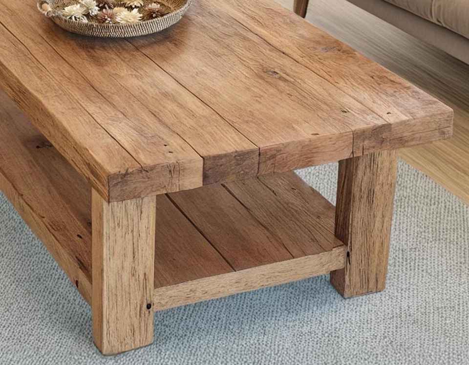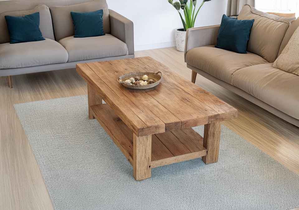 โต๊ะกาแฟห้องนั่งเล่นระดับพรีเมียม ทำจากไม้เนื้อแข็ง ดีไซน์เรียบง่าย รูปทรงสี่เหลี่ยมผืนผ้า พร้อมชั้นวางด้านล่างอเนกประสงค์ และทนทาน