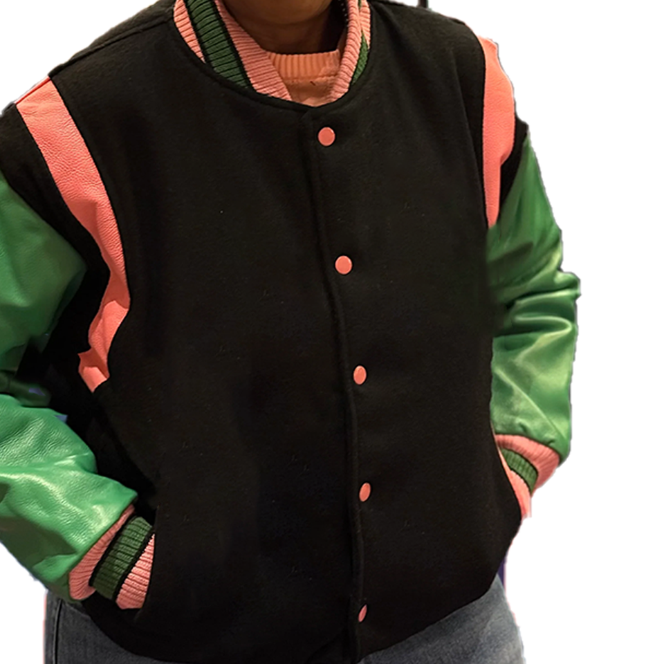เสื้อแจ็คเก็ตวาร์ซิตี้พรีเมียม แต่งริบบิ้นขนสัตว์ ปักลาย ตัวอักษร สำหรับผู้หญิง ทรงบอมเบอร์ ป้องกันลม พร้อมระบบทำความร้อน งานปักแบบวินเทจ บริการ OEM