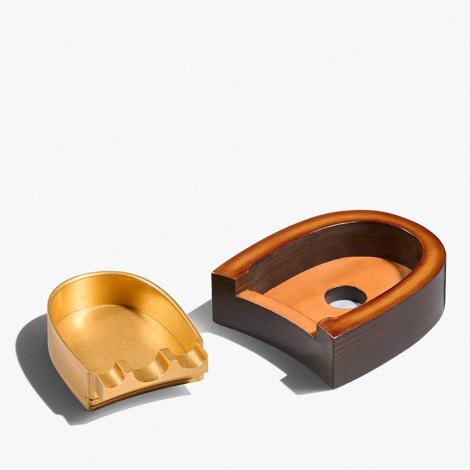 ที่เขี่ยบุหรี่ทองเหลืองพร้อมฐานไม้ _ ทันสมัยและทนทานสำหรับซิการ์และบุหรี่