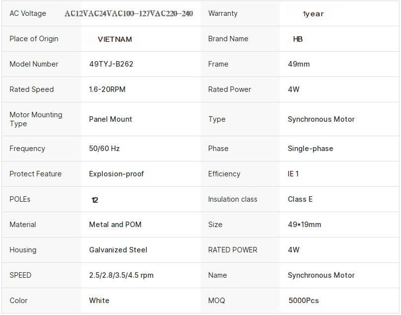 คำอธิบาย:มอเตอร์ซิงโครนัสขนาดเล็กที่มีความเร็วคงที่