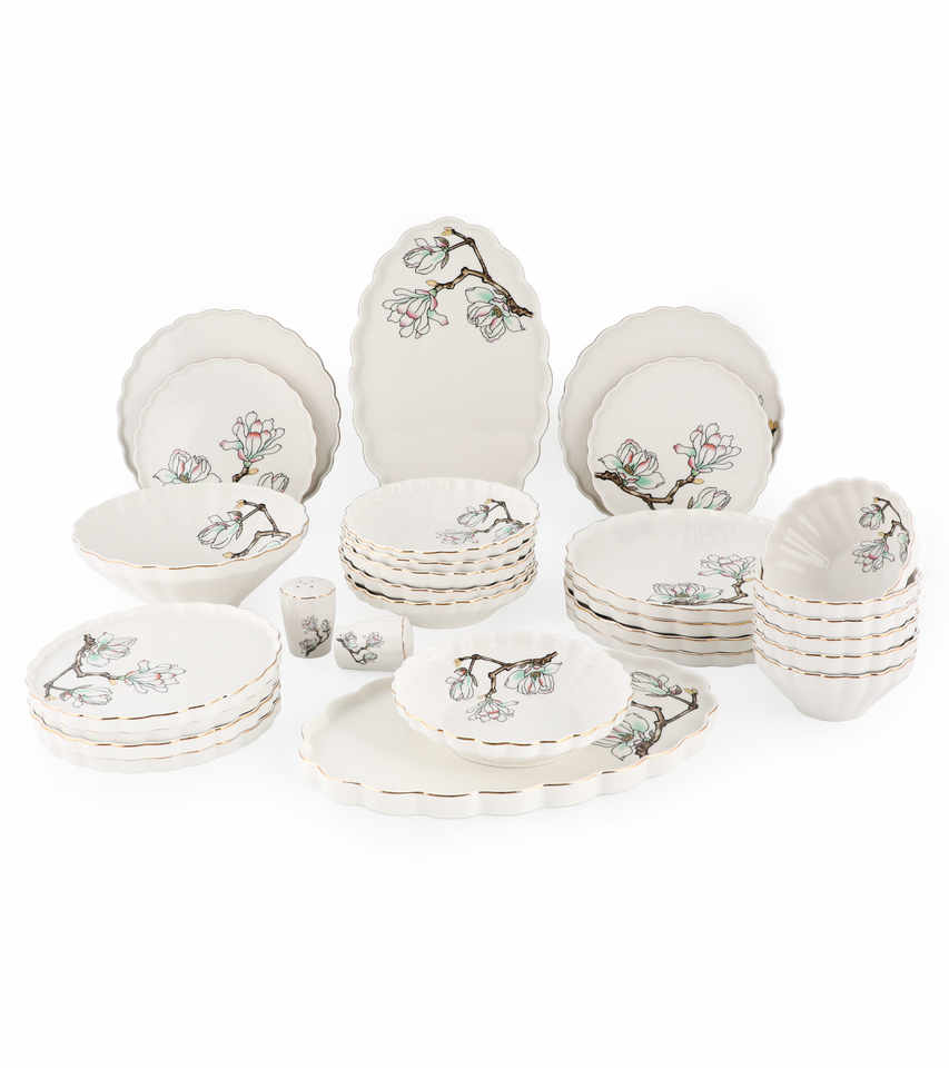 ชุดอาหารค่ำพรีเมียมหรูหรา 29 ชิ้น ทำจากเซรามิกเนื้อนิวโบนไชน่า พร้อมลวดลายดอกไม้สุดประณีต