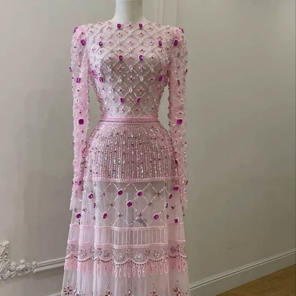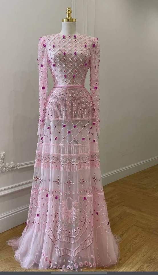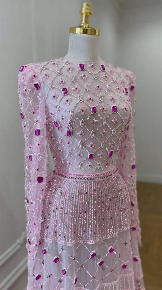 ชุดราตรีงานแต่งงานหรูหราประดับคริสตัลและลูกปัดทรงเอไลน์เอวเอ็มไพร์ยาวกรอมพื้น ผลิตจากวัสดุรักษ์โลก 100%