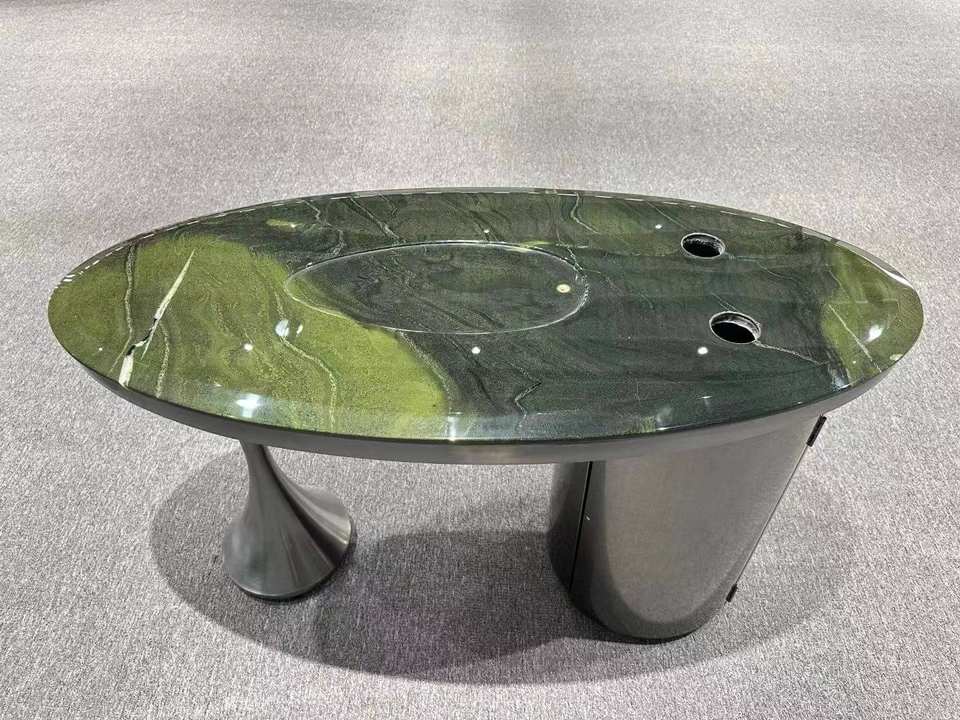 โต๊ะรับประทานอาหารหินอ่อนแคลไซต์ขัดมันกันน้ำสำหรับวิลล่าโต๊ะรับประทานอาหารแบบทันสมัยหรูหราพรีเมี่ยม