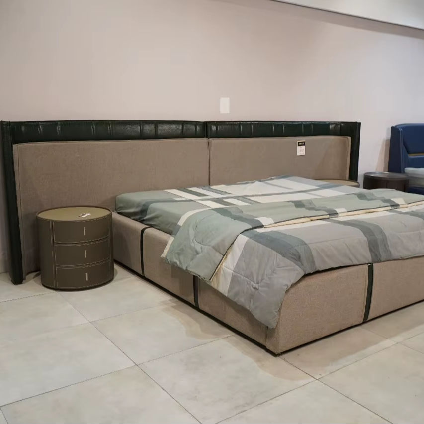 เตียงคิงไซส์หรูหราพรีเมียม ดีไซน์ทันสมัย หุ้มด้วยหนัง PU/กำมะหยี่/ผ้า พร้อมหัวเตียงบุนวม โครงสร้าง CRCA