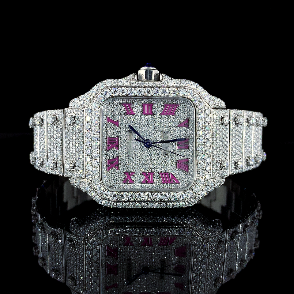 นาฬิกาแฟชั่นสแตนเลสดีไซน์เหรียญควอตซ์ประดับโมอิสซาไนต์สุดหรูระดับพรีเมียม สำหรับงานเลี้ยงธุรกิจ ราคาสุดคุ้ม