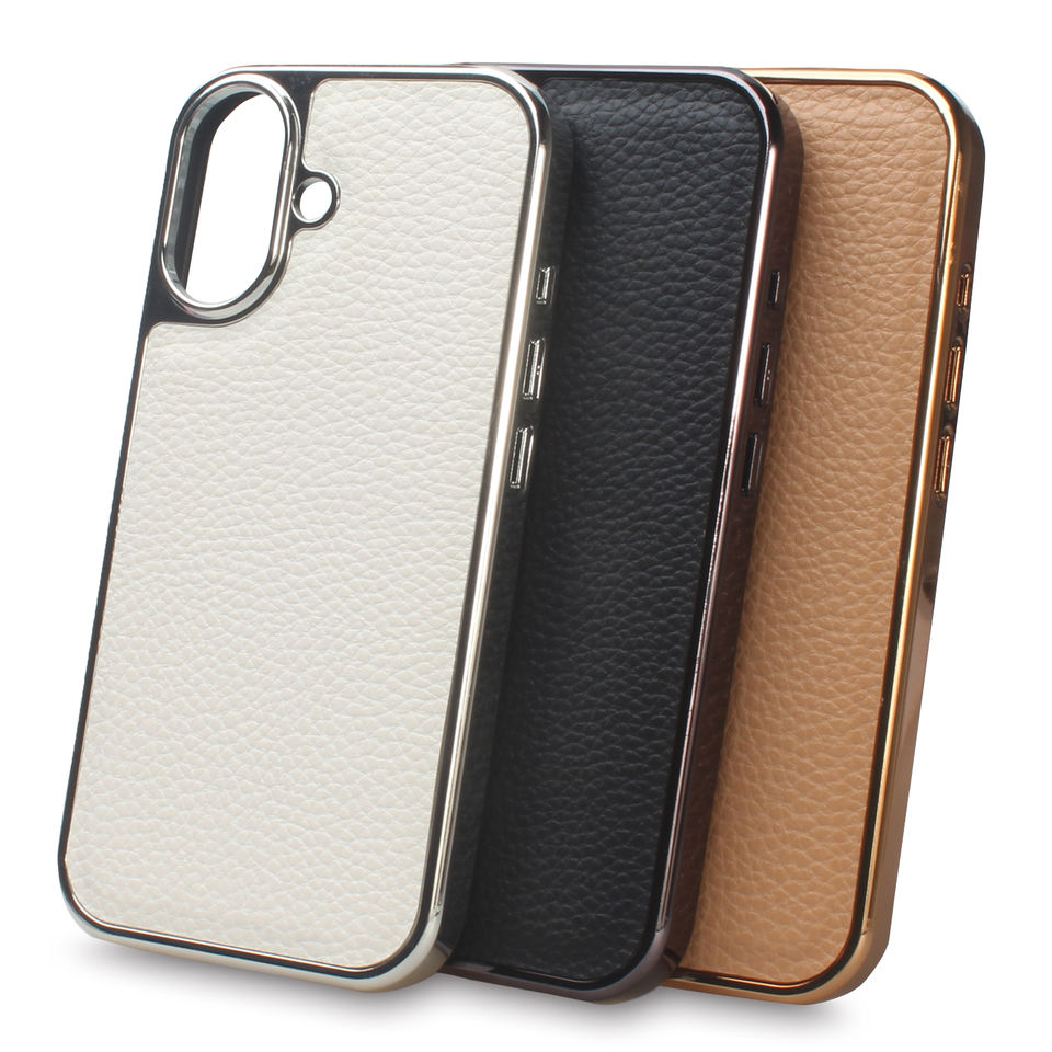 เคสโทรศัพท์หนัง PU ลายลิ้นจี่พรีเมียมพร้อมขอบโลหะมันวาวเคสแบบบางสำหรับ iPhone 17 Air 16 15 PRO MAX