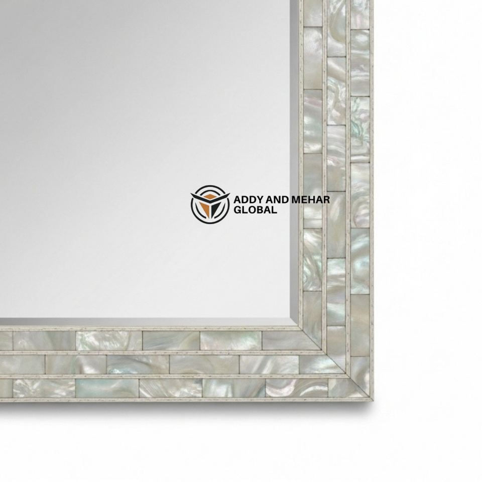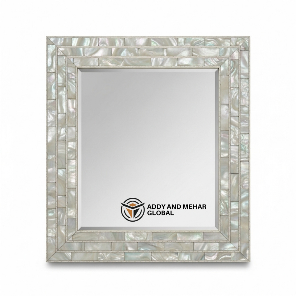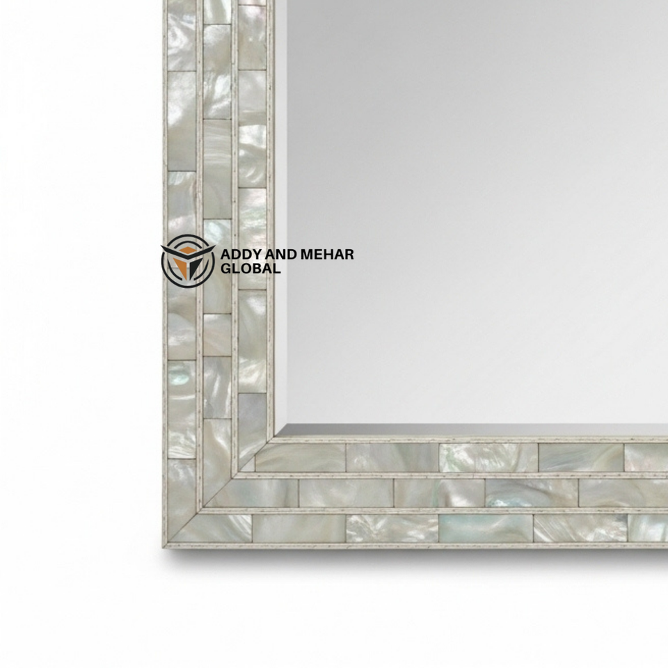 กระจกติดผนังทรงสี่เหลี่ยมฝังเปลือกหอยมุกพรีเมียม งานฝีมือตกแต่งบ้านสุดหรู