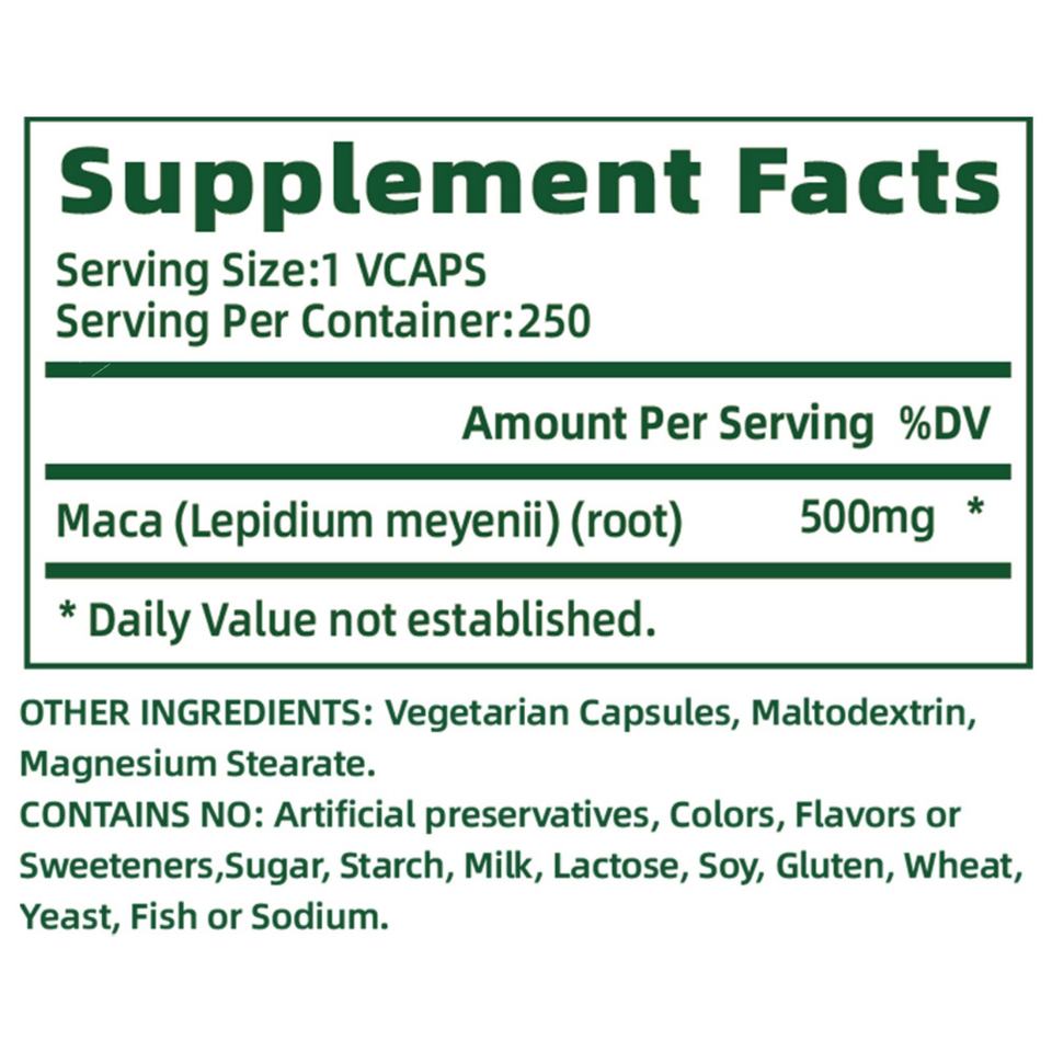 อาหารเสริมรากมาคาพรีเมียม 500 มก. ช่วยส่งเสริมภาวะเจริญพันธุ์และสุขภาพทางเพศสำหรับผู้ชายและผู้หญิง รากมาคาแบบแคปซูล