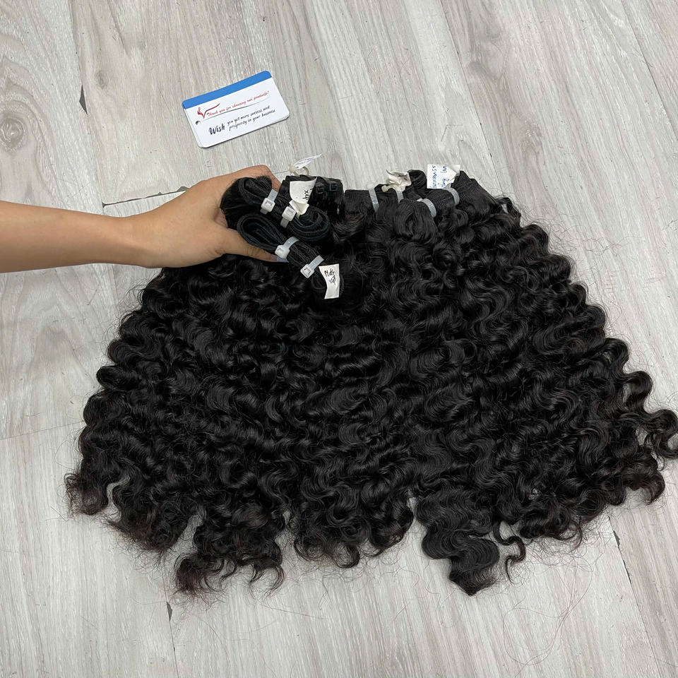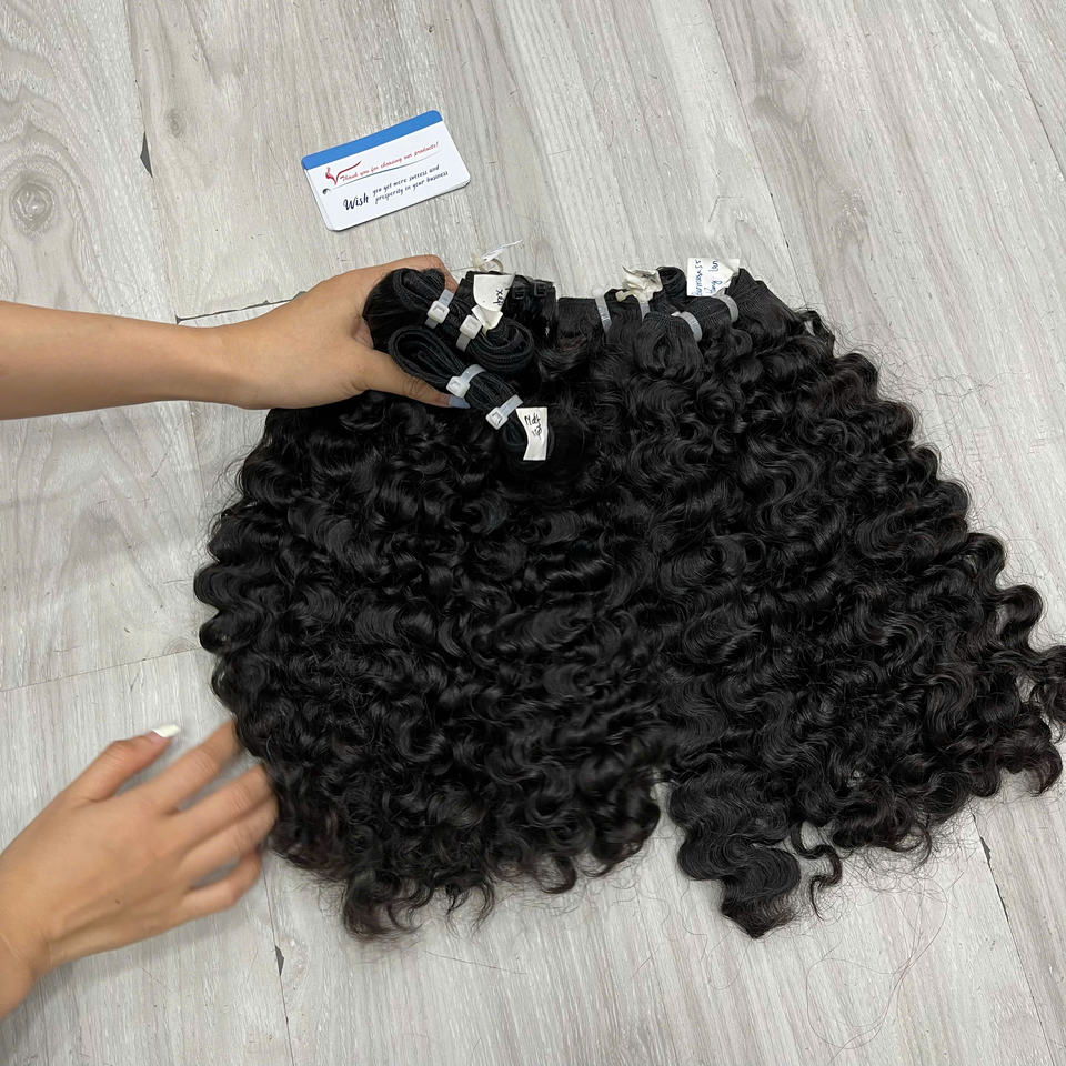 ผมต่อแบบพรีเมียม เกรดเครื่องจักร แบบอบไอน้ำ ผมหยิกแบบพม่า สีธรรมชาติ 100% ผมแท้ พร้อมส่ง