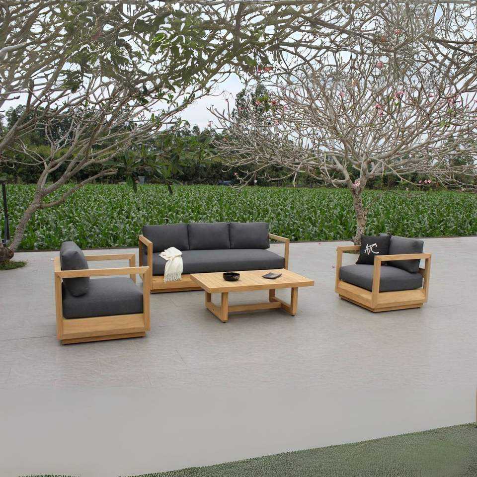 ชุดเฟอร์นิเจอร์สนามไม้สักเมอร์กอย่า พรีเมียม 4 ชิ้น พร้อมเบาะรองนั่ง