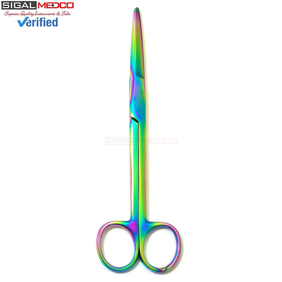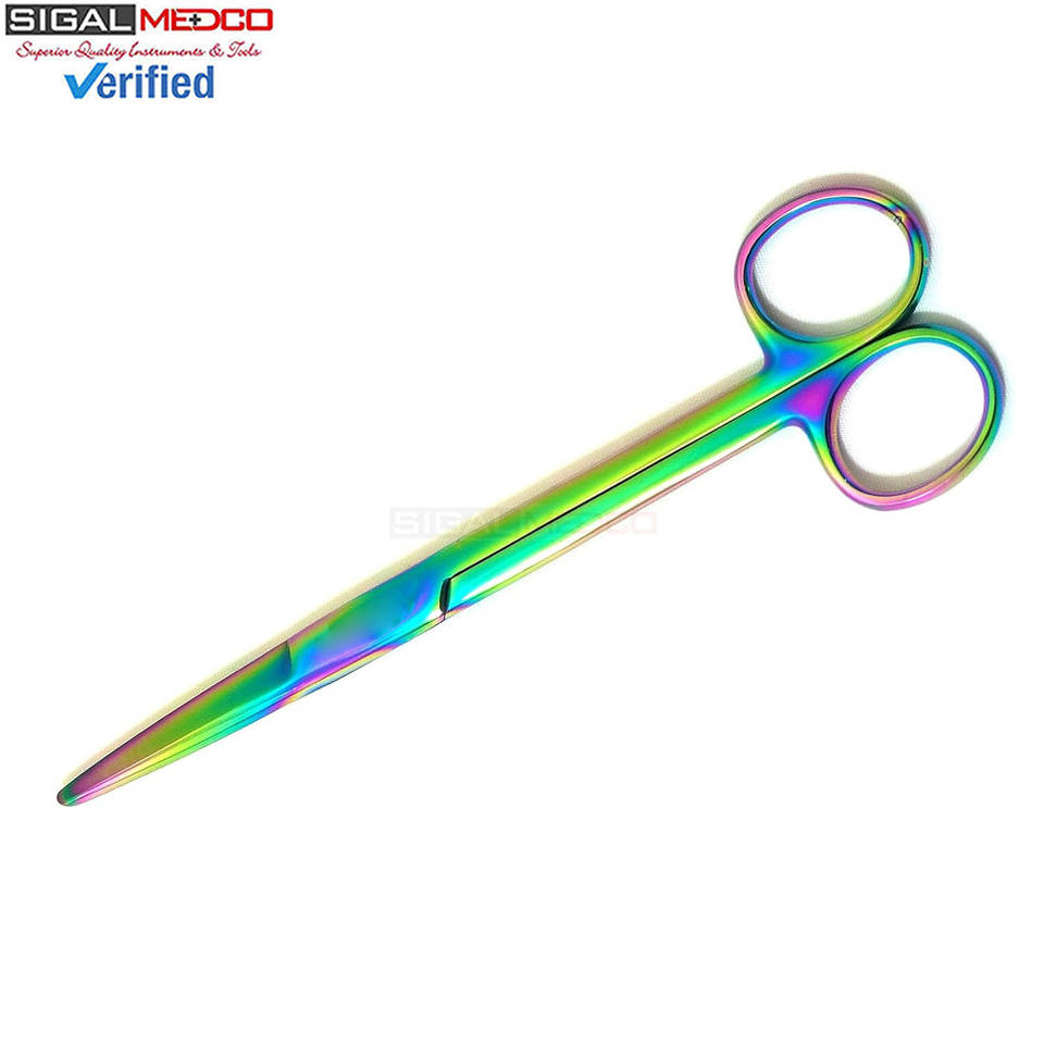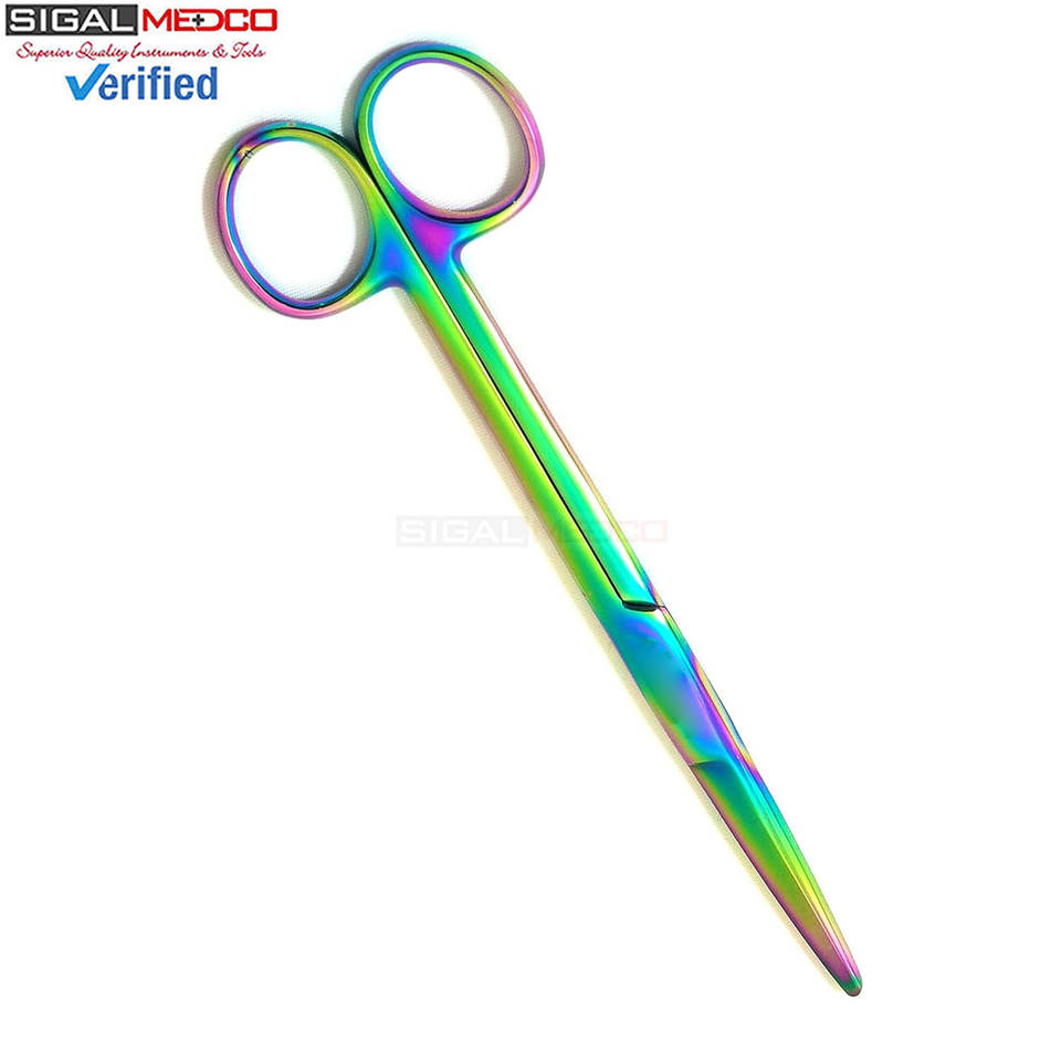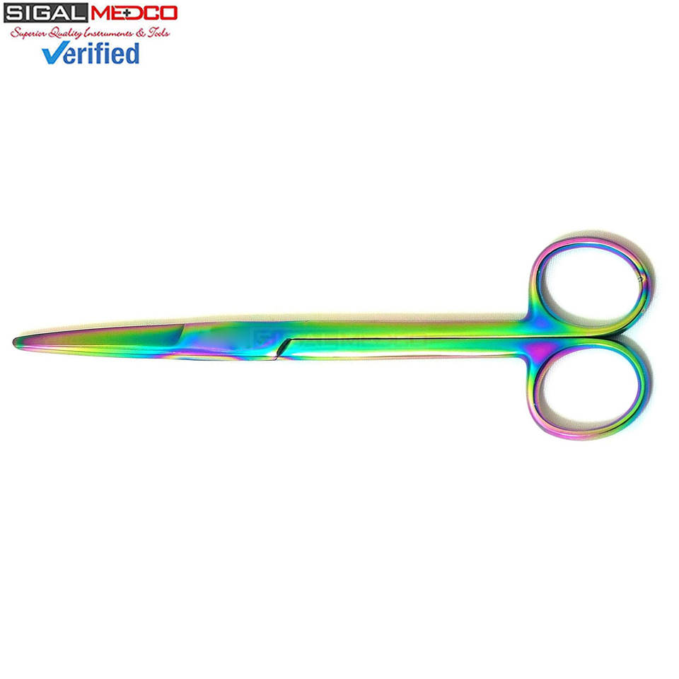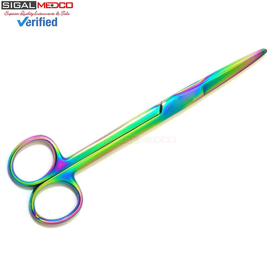 กรรไกรผ่าตัดแบบแมนนวล พรีเมียม เหล็กกล้าไร้สนิมเยอรมัน ใบมีดตรง 6.75 นิ้ว ปลายทู่ เคลือบไทเทเนียมสีรุ้ง คุณภาพสูง