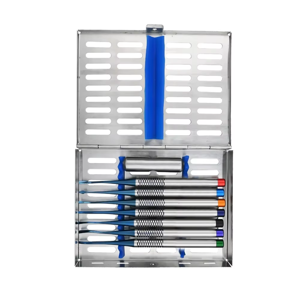ชุดอุปกรณ์ยกฟันแบบแมนนวลระดับพรีเมียม 8 ชิ้น แบบคาสเซ็ต สแตนเลสสตีล สำหรับงานทันตกรรมมืออาชีพ พร้อมการจับที่แม่นยำสำหรับ PDL