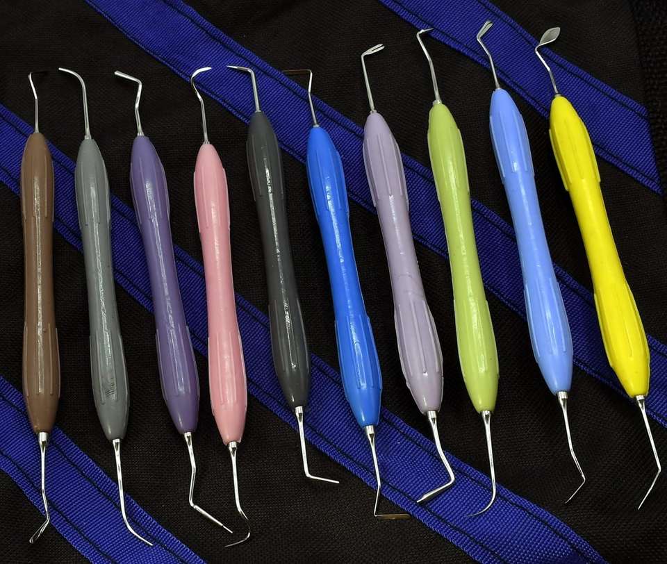 ชุดเครื่องมือทันตกรรมแบบแมนนวล พรีเมียม ทำจากสแตนเลส สำหรับงานฟื้นฟูฟัน พร้อมด้ามจับซิลิโคน สำหรับงานอุดฟันคอมโพสิต