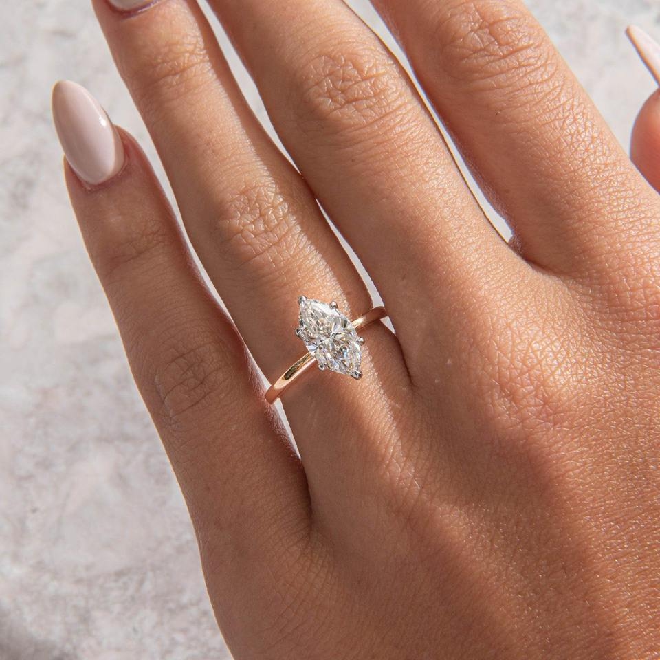 แหวนหมั้นเพชรทรงมาร์ควิส คุณภาพพรีเมียม ระดับความสะอาด VVS2 สี E เพชรเพาะเลี้ยงในห้องปฏิบัติการ ได้รับการรับรองจาก IGI ชุบทอง 10k ผลิตตามสั่ง ขายส่งเครื่องประดับ