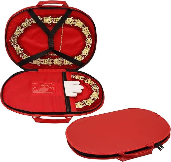 กล่องใส่สร้อยคอเมสันแบบพรีเมียม หนังเทียม | กระเป๋าใส่เครื่องหมายฟรีเมสัน | ที่เก็บของแบบคู่พร้อมซับในนุ่ม ซิป