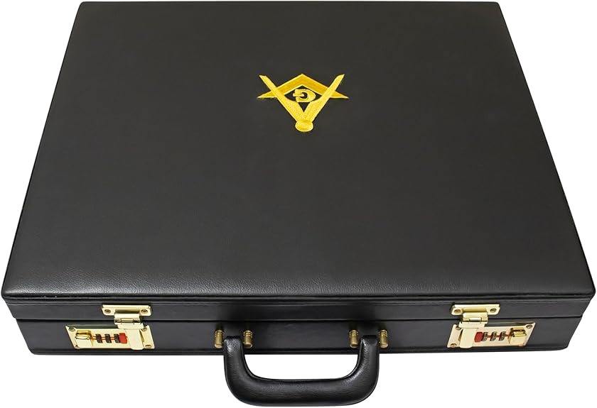 กระเป๋าเอกสารแข็งสำหรับเครื่องหมายประจำตระกูลเมสันระดับพรีเมียม พร้อมงานปักด้วยเครื่อง (สีเงิน) – หนังเทียมสีดำ