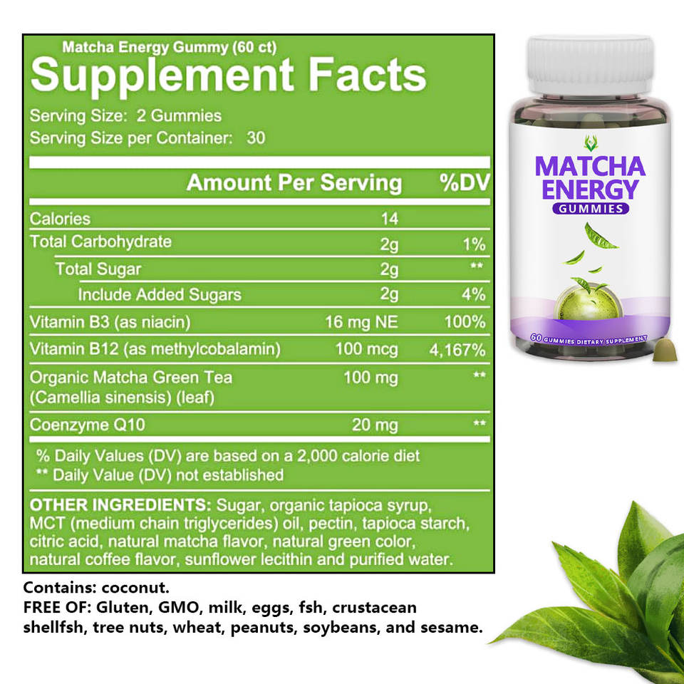 วิตามิน B3, วิตามิน B12, ชาเขียวมัทฉะออร์แกนิก, โคเอนไซม์ Q10ส่วนผสมหลัก