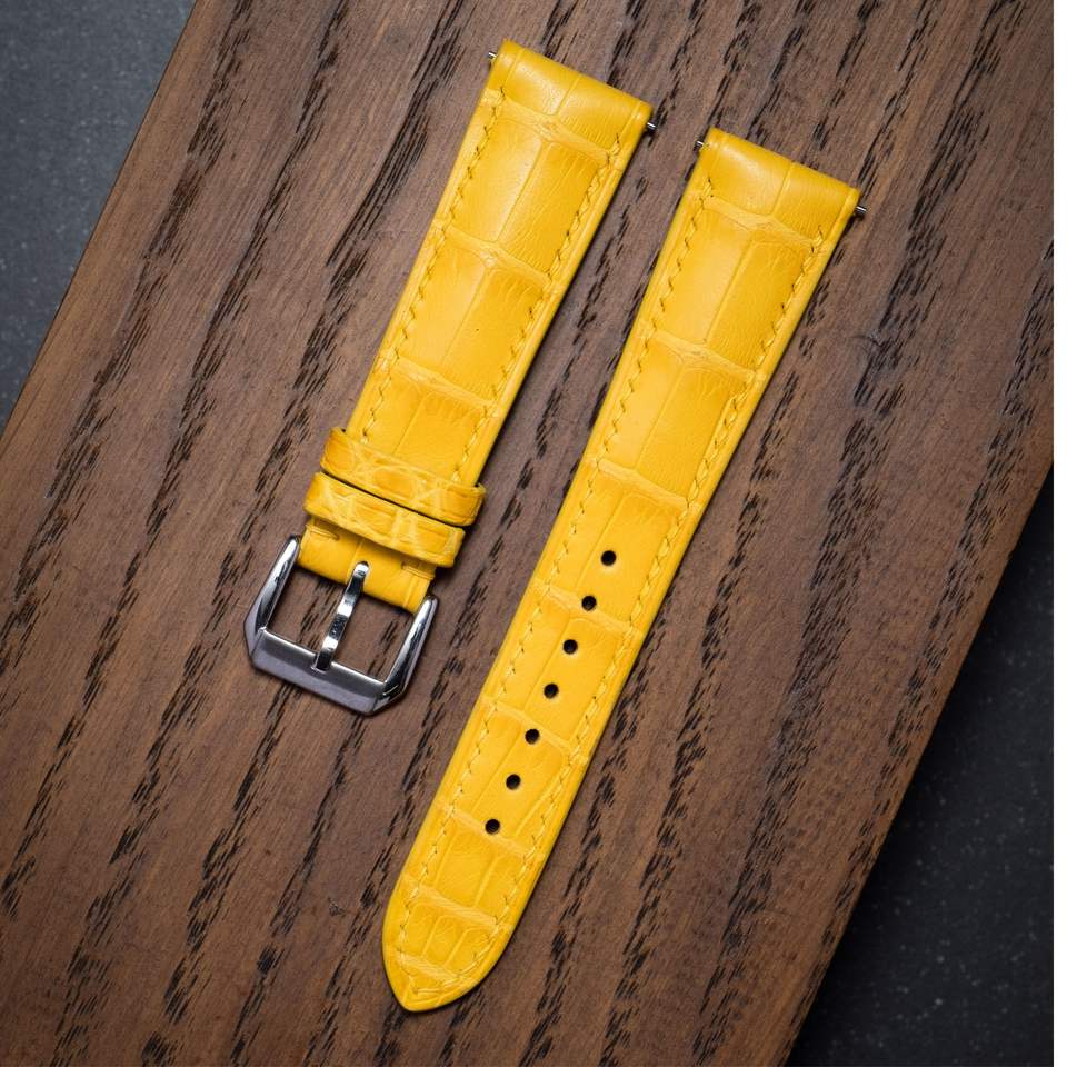 สายนาฬิกาหนังจระเข้อเมริกันแบบด้านพรีเมียม ขนาดสั่งทำพิเศษ ผลิตด้วยมือ หรูหรา ทนทาน โรงงาน OEM ส่งออกโดยตรง