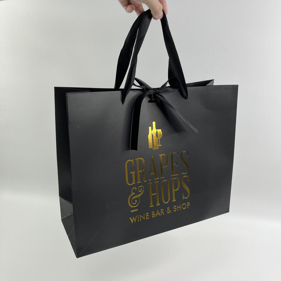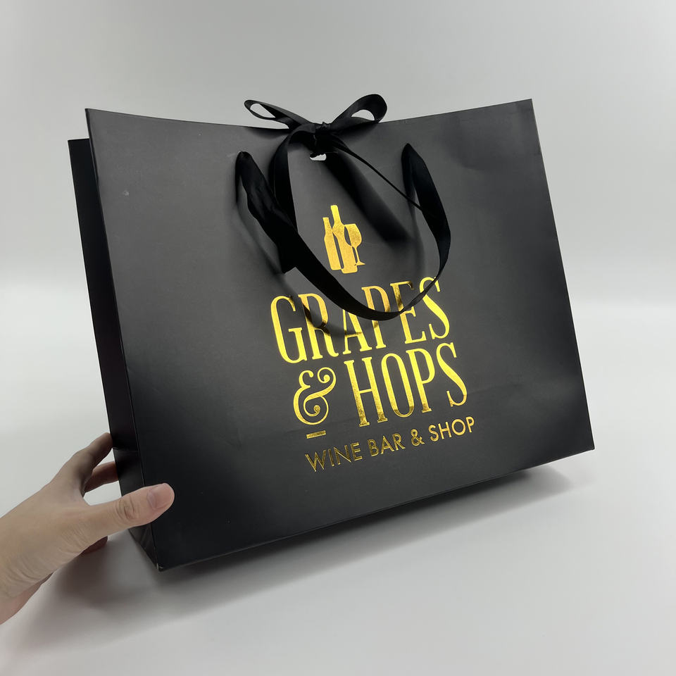 ถุงกระดาษสีดำด้านพรีเมียมพร้อมโลโก้สีทอง - ถุงช้อปปิ้งสุดหรูสำหรับงานแต่งงานและโอกาสพิเศษ