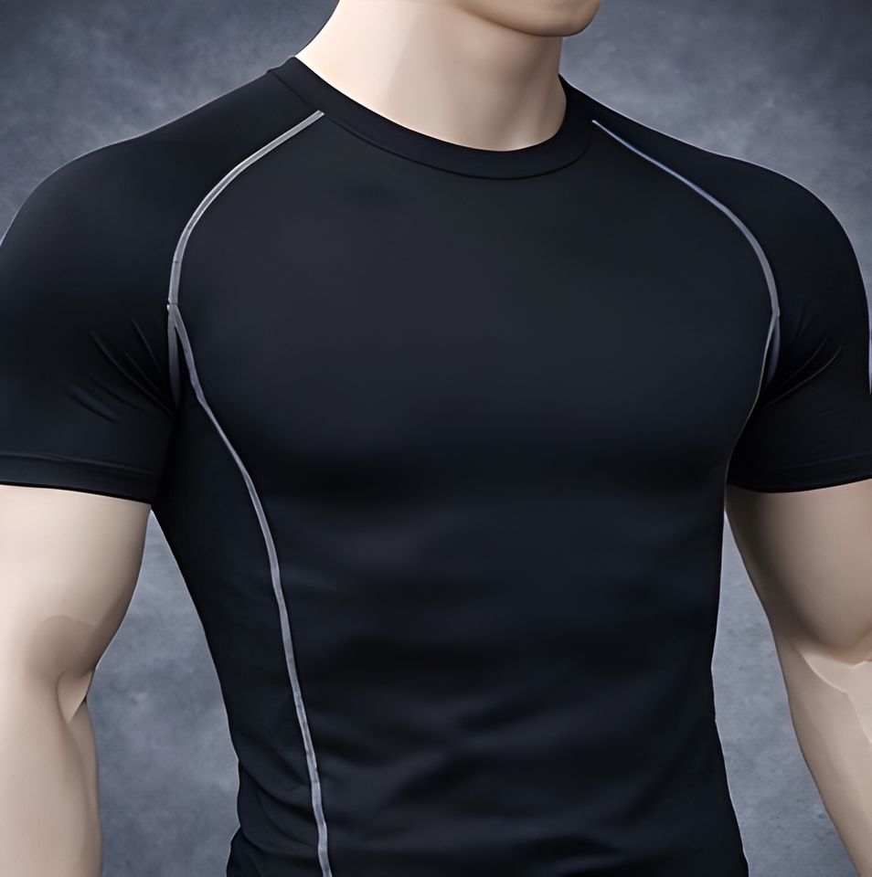 เสื้อยืดกีฬาผู้ชายพรีเมียม ผ้าคอตตอน 95% สแปนเด็กซ์ 5% กระชับรูปร่าง เหมาะสำหรับออกกำลังกาย วิ่ง และเล่นกีฬา