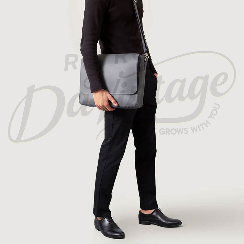 กระเป๋าหนังแท้สีเทาสำหรับผู้ชาย รุ่นพรีเมียม สะพายข้าง ใส่แล็ปท็อปได้ พร้อมสายสะพายไหล่ปรับระดับได้