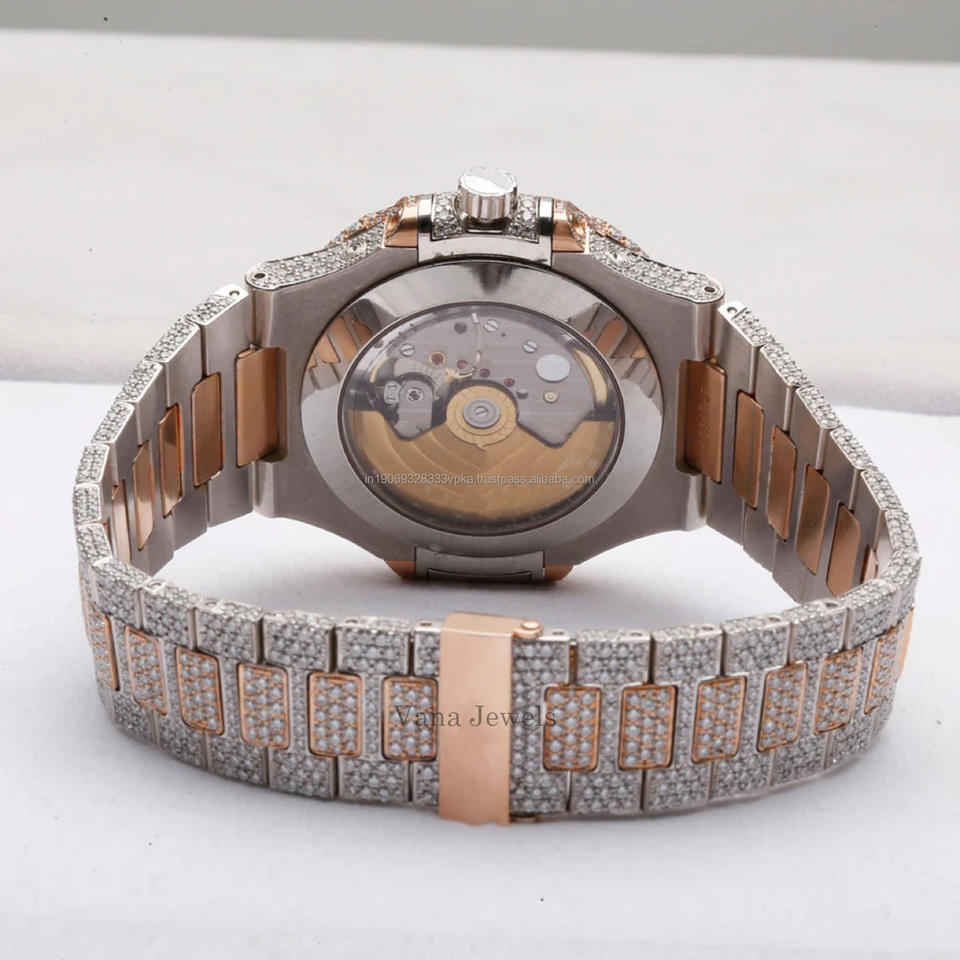 นาฬิกาอนาล็อกสแตนเลสสำหรับผู้ชายแบบพรีเมี่ยมขนาด41มม. สไตล์ฮิปฮอปสุดหรูกระจกอะนาล็อกคุณภาพสูง