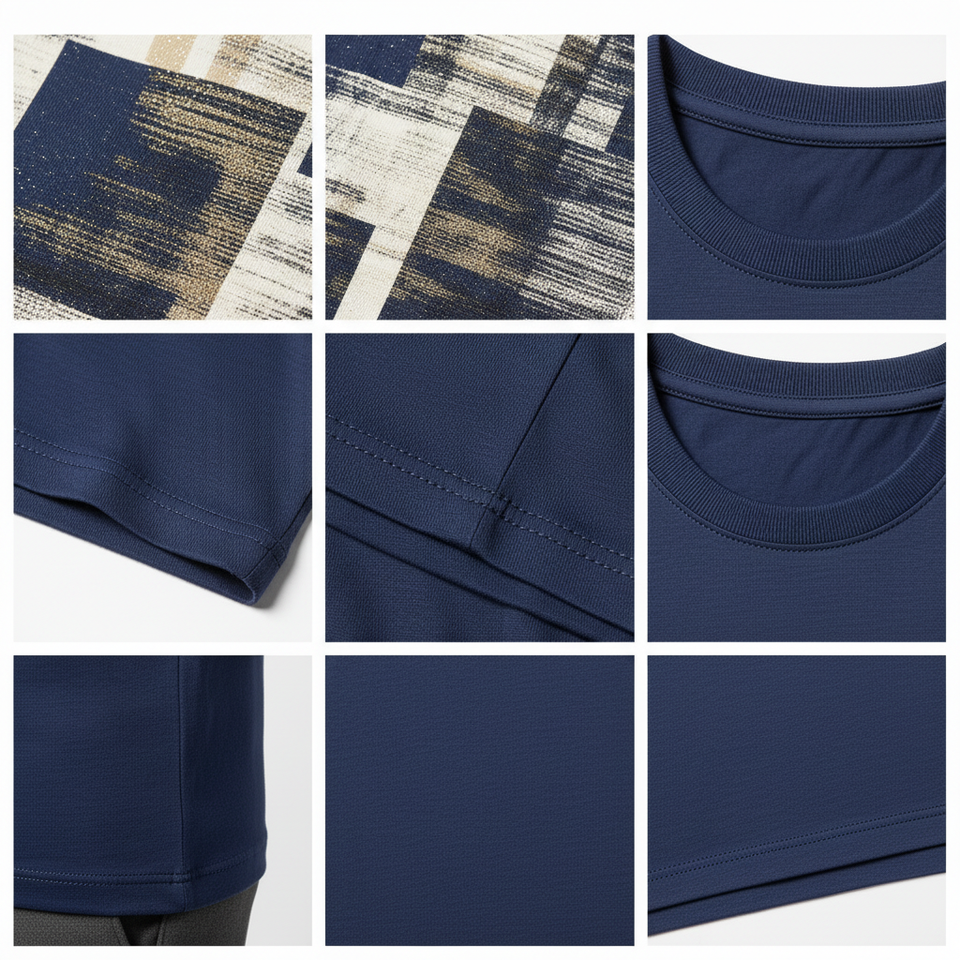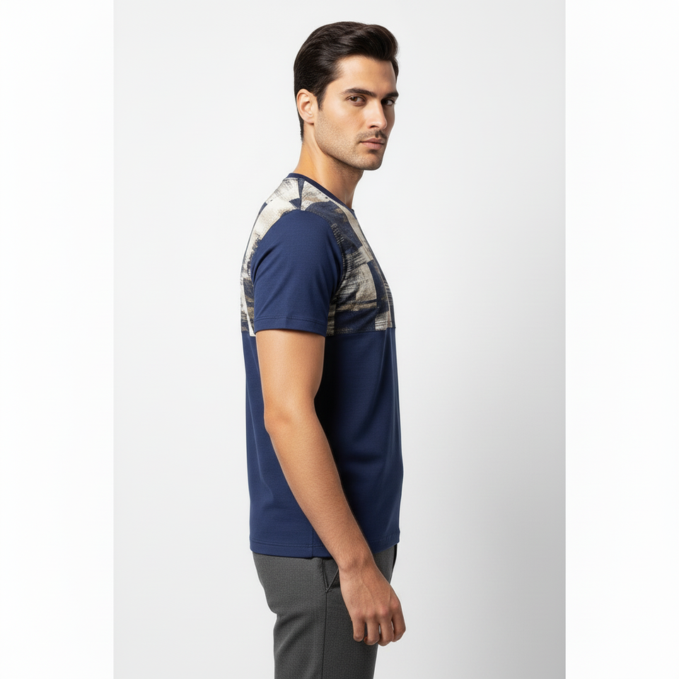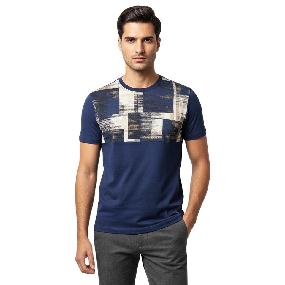 เสื้อยืดแขนสั้นผู้ชายพรีเมียม ดีไซน์เนอร์ พิมพ์ลายซิลค์สกรีน ผ้าฝ้าย 100% ทรงลำลอง กระชับพอดีตัว ดีไซน์โมเดิร์นแบบ Patchwork