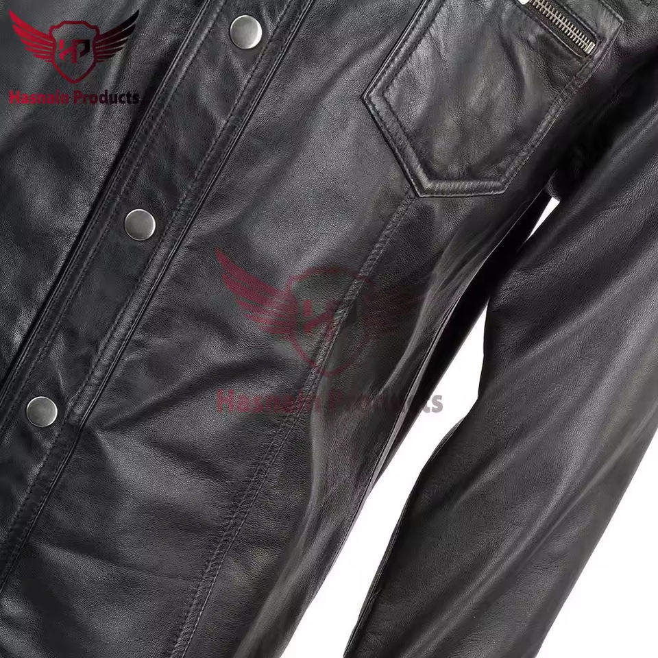 เสื้อแจ็คเก็ตหนัง Essex ของผู้ชายแบบพรีเมี่ยมสีดำมีสไตล์การออกแบบแนวสตรีทสำหรับฤดูหนาว