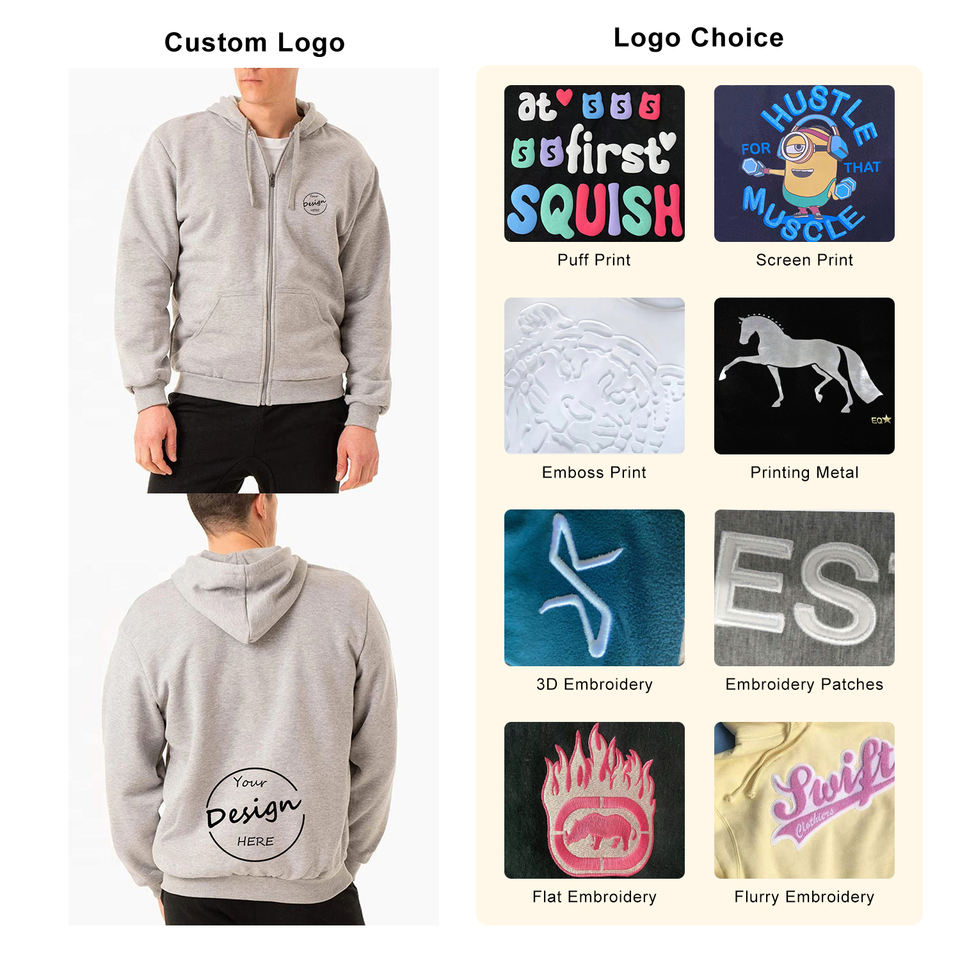 เสื้อมีฮู้ดแบบซิปรูดเต็มของผู้ชายแบบพรีเมี่ยมผ้าคอตตอนเฟรนช์เทอร์รี่เป็นมิตรกับสิ่งแวดล้อมในฤดูใบไม้ร่วงซื้อออนไลน์