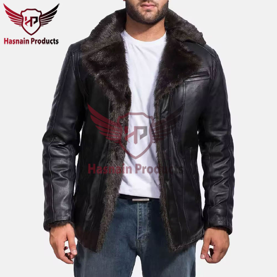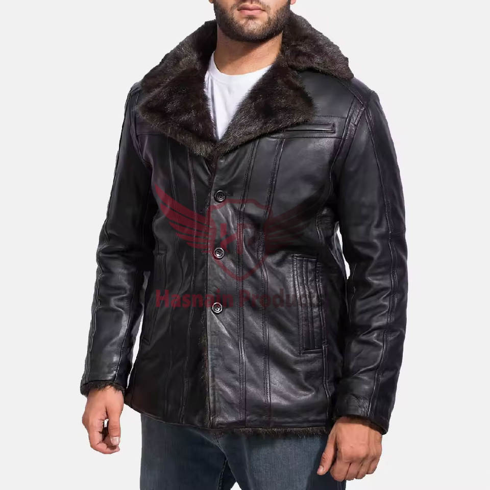 เสื้อโค้ทหนังสีดําผ้าสติ๊กผู้ชายระดับพรีเมี่ยม: เสื้อเชอร์ปาปกฤดูหนาวข้นกว่าเสื้อแจ็คเก็ต เสื้อโค้ทหนังสีดําผ้าสติ๊กผู้ชายฤดูหนาว