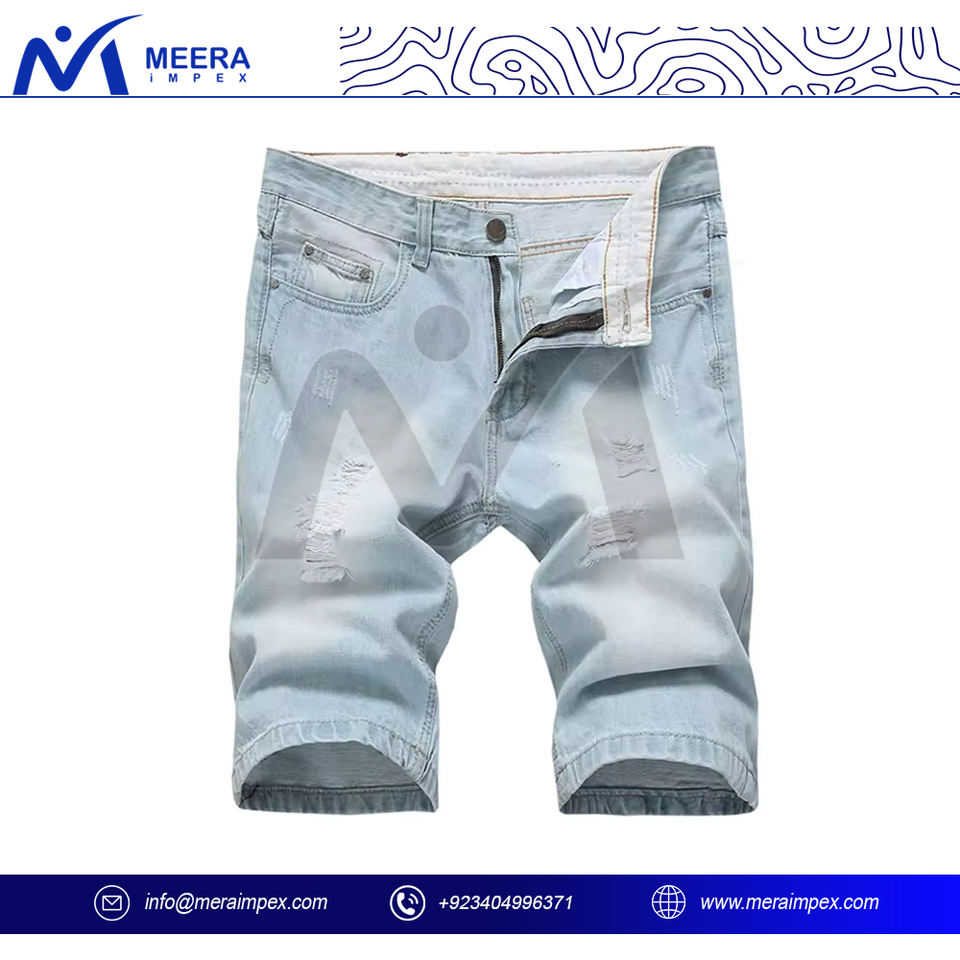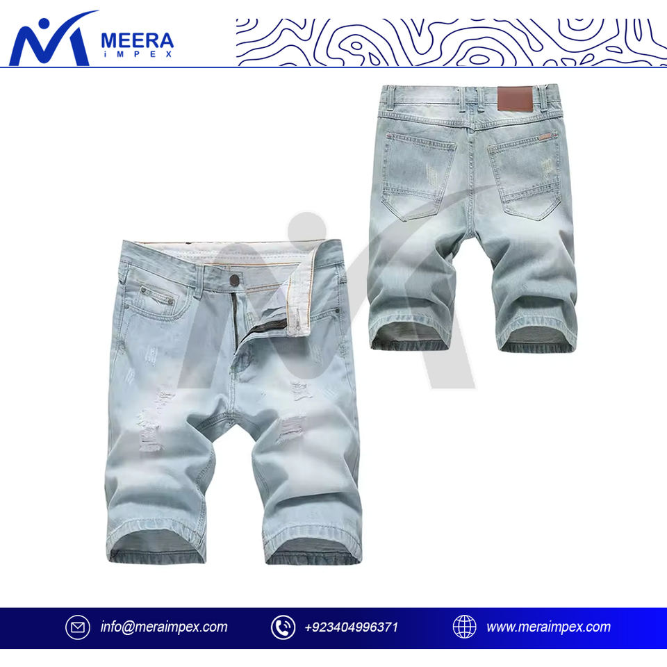 กางเกงขาสั้นผ้ายีนส์เอวสูงของผู้ชายแบบพรีเมี่ยมมีสไตล์เข้ารูปมีกระดุม100% ลอยผ้าฝ้ายทนทานตกแต่งวินเทจแบบลำลอง