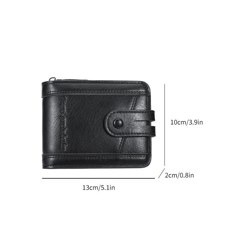 Premium Men's Short PU Leather Wallet Multi-card Slot Large Capacity RFID Blocking Zipper Coin Pocket Bifold Chains