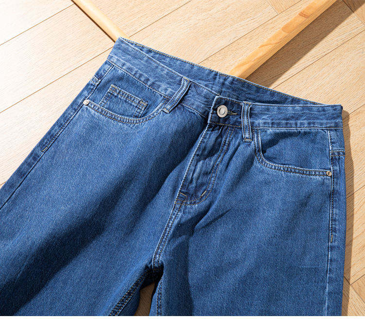 กางเกงยีนส์ลำลองผ้ายืดของผู้ชายแบบลำลองของพรีเมี่ยมเป็นมิตรกับสิ่งแวดล้อมผ้าเดนิมระบายอากาศได้ดีฤดูใบไม้ผลิเบาสำหรับเสื้อผ้าผู้ชาย