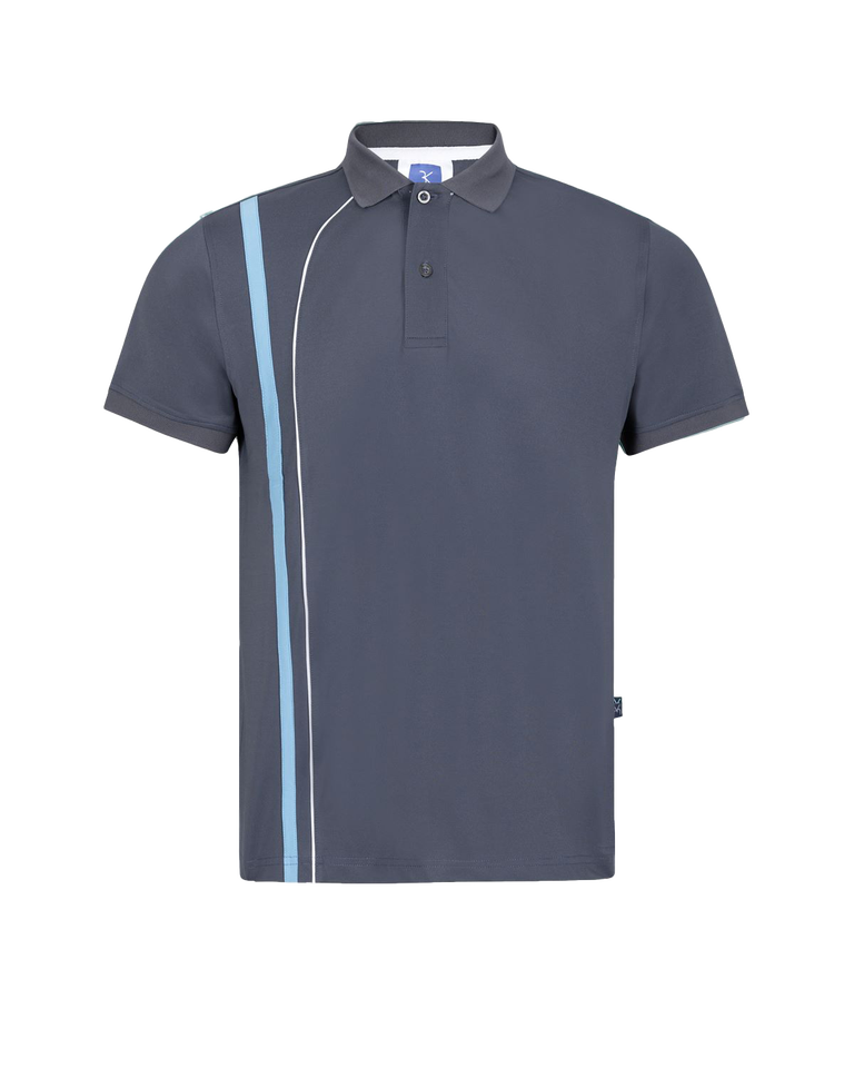 เสื้อโปโลมีท่อหลายเส้นตัดกันด้านหน้า