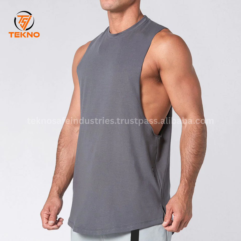 เสื้อกล้ามผู้ชายแบบพรีเมี่ยมแขนกุดสำหรับผู้ชายเสื้อทรงหลวมระบายอากาศได้ดีสำหรับใส่ไปยิมฟิตเนส
